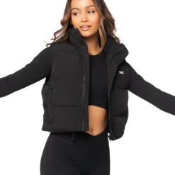 Elite Eleven Cropped Puffer Vest – Black