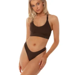 Utilising a blend of 92% Nylon and 8% spandex, the Ribbed Seamless Strappy Bra is the perfect fit for your next day in the sun. With subtle branding and an all over ribbed texture, available in 6 earthy colour ways, this range is sure to be your new summer staple.