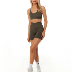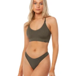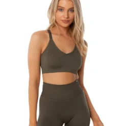 Utilising a blend of 92% Nylon and 8% spandex, the Ribbed Seamless Strappy Bra is the perfect fit for your next day in the sun. With subtle branding and an all over ribbed texture, available in 6 earthy colour ways, this range is sure to be your new summer staple.