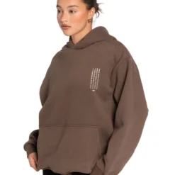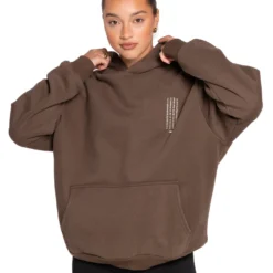 Sizing for this product is a baggy and oversized fit. The female model is 5’8 and is wearing a size small. The male model is 5’10 and is wearing a size medium (both their usual size in EE hoodies).